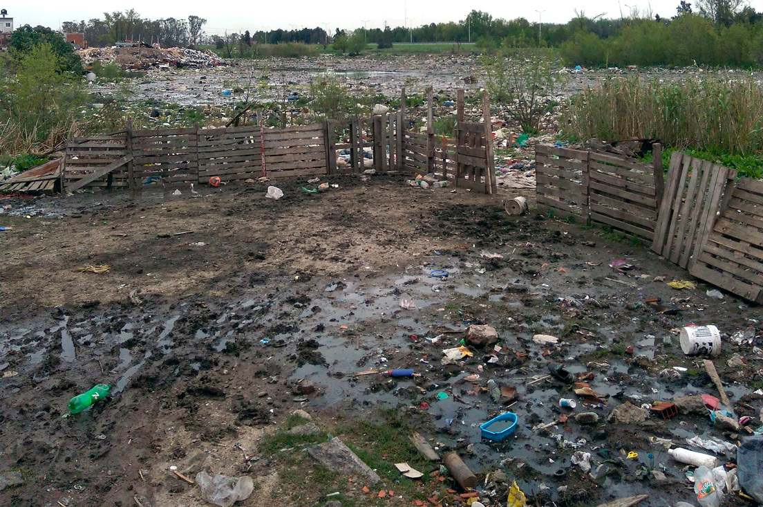 A unos 100 metros de un basurero clandestino, conocido por los vecinos como "el lago de basura", Ana Coronil tiene su casilla de chapa, donde vive con su marido, cuatro hijos de entre seis y 13 años, y un sobrino de 14. "Ya estamos acostumbrados al olor, otra opción no hay", comenta. En realidad, su hogar no tiene divisiones. Es una habitación con el baño y la cocina integrada, una de esas viviendas improvisadas que no resistiría ni el más mínimo temporal.