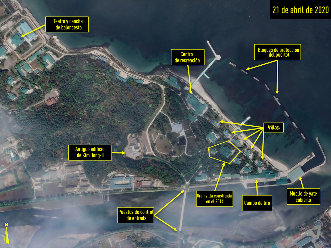 El complejo de Wonsan incluye nueve grandes casas de huéspedes y un centro de recreación. En el centro de su territorio hay un gran edificio que fue construido poco después de que Kim Jong-un llegara al poder en 2014, informa 38 North. Además, la residencia cuenta también con un puerto protegido, campo de tiro y un muelle cubierto para yates. Adyacente a la estación de ferrocarril se puede ver una pequeña pista que originalmente fue usada para aviones ligeros, pero en la segunda mitad de 2019 fue convertida en una pista de equitación.