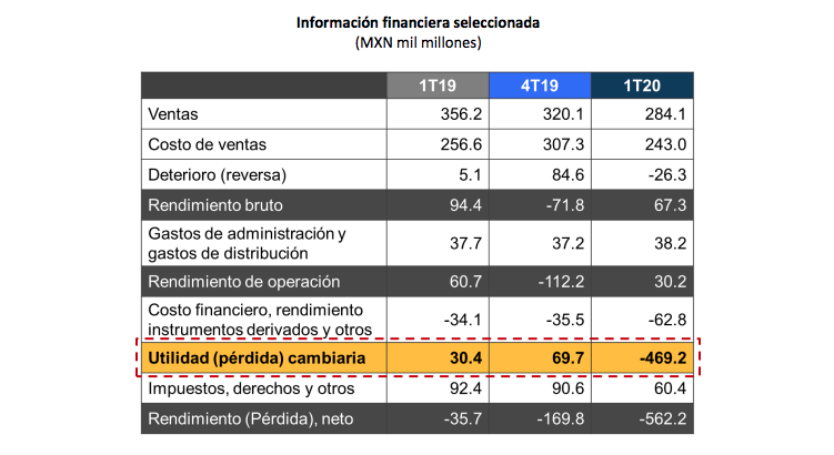 La pérdida neta de la petrolera en el primer trimestre de 2020 es 62 % mayor que la registrada en todo el 2019, cuando Pemex reportó una merma por unos 346.135 millones de pesos (unos 14.356 millones de dólares).
