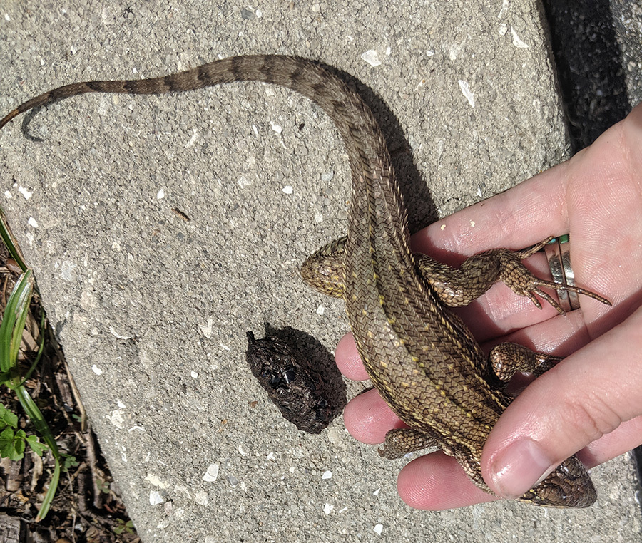 La generalizada hinchazón del animal, hasta ese entonces sin una explicación, llevó a Claunch a acudir a Edward Stanley, director de un laboratorio del Museo de Florida. Con su ayuda se le realizó una tomografía a la lagartija y se descubrió un enorme bolo fecal que ocupaba el 35 % del volumen total de su cuerpo. Esa masa había desplazado sus órganos y a duras penas había dejado espacio para el corazón, los pulmones y el hígado. "Debe haber sido una situación muy incómoda para la pobre lagartija", manifiesta Stanley.