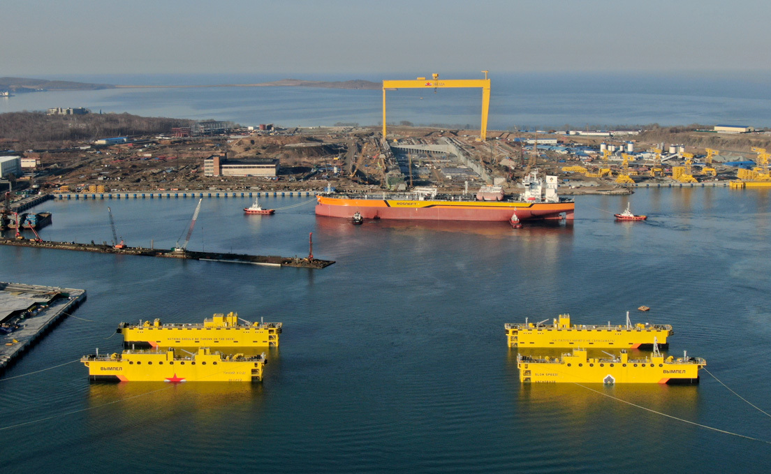 Los astilleros Zvezdá, anteriormente especializados en la construcción y reparación de submarinos de propulsión nuclear, comenzaron en septiembre de 2018 la construcción del dique seco más grande de Rusia en la localidad de Bolshói Kamen, en el Lejano Oriente ruso. El proyecto ha sido realizado por la empresa estatal china China Communications Construction Company (CCCS).