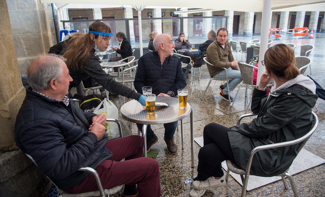 "La gente ha venido con muchas ganas. Juntarse con la familia, los amigos, comer, tomarse unos vinitos. Nosotros nos socializamos así y los clientes han echado mucho de menos el bar", explica Cristina Izaguirre, que dirige la Taberna Blas de Lezo en el centro de la ciudad.