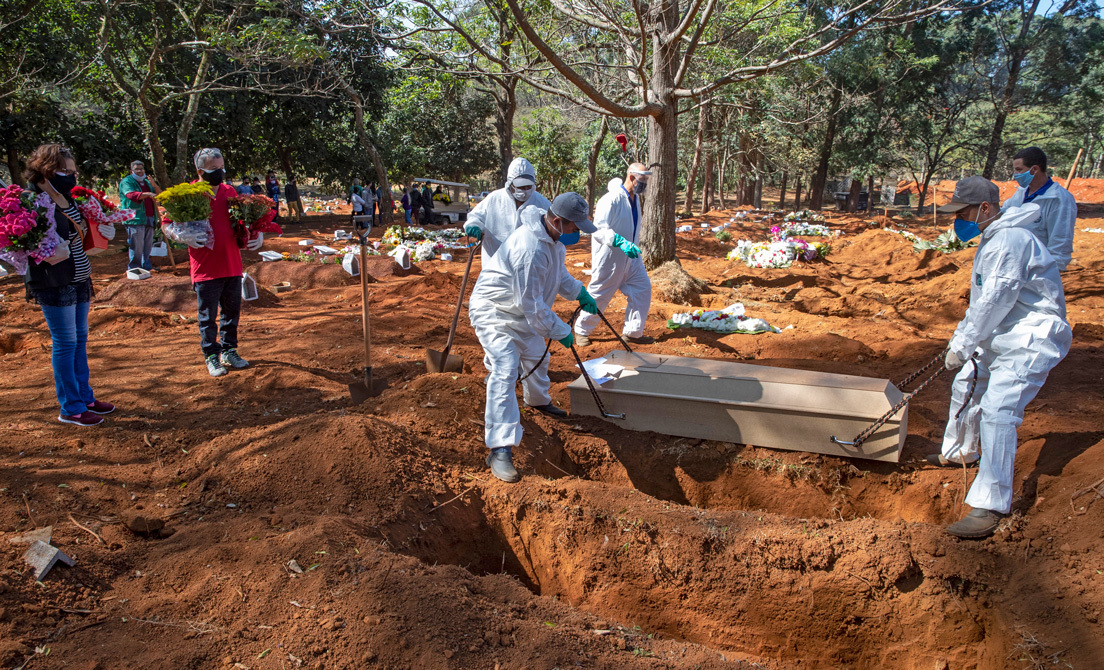 Con 310.087 contagiados y 20.047 fallecidos, según cifras de este 21 de mayo, Brasil se ha convertido en el tercer país del mundo con más casos diagnosticados de covid-19, por detrás de Estados Unidos (con 1,5 millones) y de Rusia (con 317.000). En la clasificación de países con mayor número de óbitos provocados por la pandemia del coronavirus, Brasil ocupa el quinto lugar por detrás de Estados Unidos, Reino Unido, Italia, Francia y España. Especialistas citados por el periódico Folha de Sao Paulo alertan que, debido a las condiciones de pobreza y desigualdad de una parte significativa de la población brasileña, se podrán registrar más de 100.000 muertes en el país.