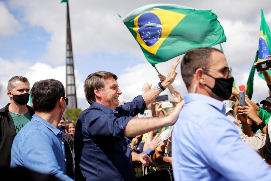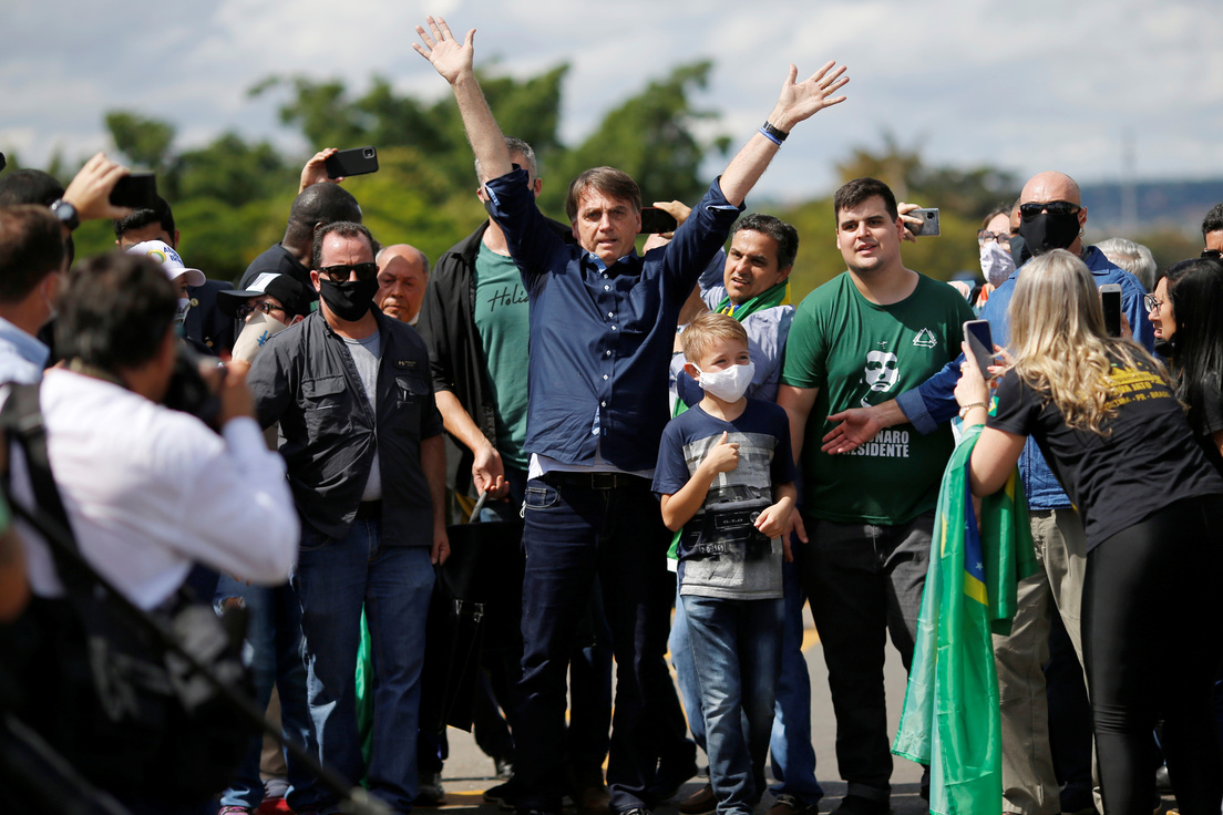 El presidente de Brasil, Jair Bolsonaro, salió a saludar a sus seguidores congregados este domingo cerca del Palacio de Planalto en Brasilia sin ninguna medida de precaución, pese a que su país ahora es el segundo más afectado por la pandemia de covid-19 en el mundo después de EE.UU. Hasta el momento, la nación sudamericana suma un total de 22.666 decesos y más de 363.211 infectados desde el inicio del brote.