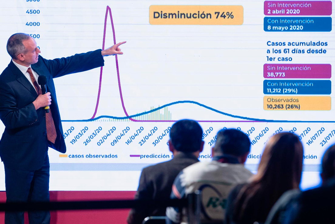 El pasado 19 de mayo, López-Gatell explicó que, de acuerdo con modelos matemáticos desarrollados de manera independiente por seis grupos de expertos, las predicciones realizadas al inicio de la epidemia en el país señalaban que el pico de contagios llegaría el 8 de mayo.