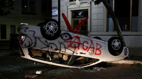 Los manifestantes causaron daños en toda la ciudad. Hubo informes de vandalismo, robo de negocios, incendios provocados y asaltos a agentes de policía, según el comunicado de la policía.