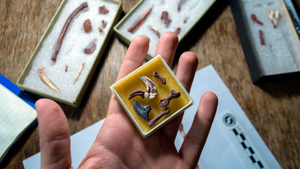 Los restos de esa especie, llamada 'Overoraptor chimentoi', fueron encontrados en la provincia patagónica de Río Negro durante dos campañas en el 2013, cuando hallaron una pequeña garra afilada de una pata, y en el 2018, al recuperar "más materiales del esqueleto como vértebras, partes de las cinturas escapular y pélvica y huesos del ala y de las patas", reza el reciente estudio, publicado en la revista The Science of Nature.