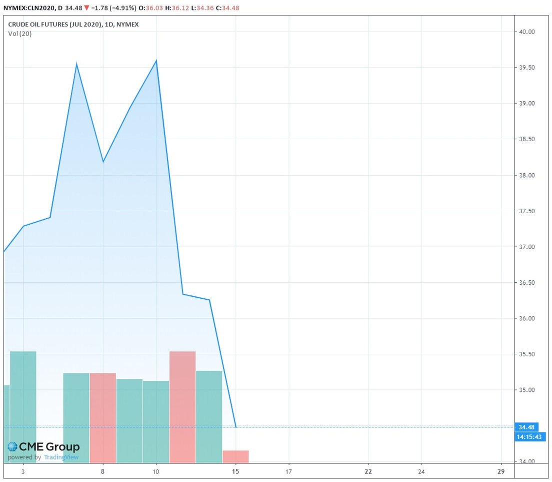 Por su parte, el precio de los futuros para julio del crudo estadounidense WTI también está perdiendo puntos, y en lo que va de esta jornada ha caído más del 5%.