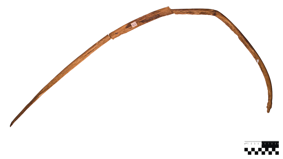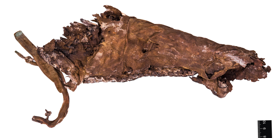 El cuerpo fue enterrado entre finales del siglo VII y principios del siglo VI a. C. junto con varias armas, que incluían un hacha, un arco de abedul y un carcaj con diez flechas de unos 70 centímetros de largo, dos de madera, una con punta de hueso y el resto con cabezas de bronce. El ataúd, tallado en una sola pieza de madera, se encontraba enterrado a poco más de medio metro de profundidad y orientado hacia el suroeste.