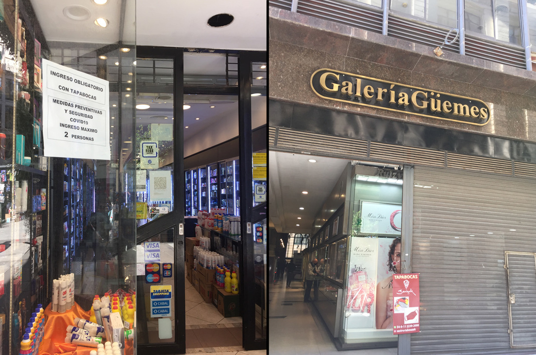 Uno de los atractivos de la calle Florida eran sus galerías plagadas de locales y cafés, algunas al estilo francés, como la mítica Galería Güemes, en la que Julio Cortázar se inspiró para escribir su cuento 'El otro cielo' y que hoy, a medio abrir, luce en penumbras, con las luces apagadas y apenas un par de locales de perfumes con atención al público.
