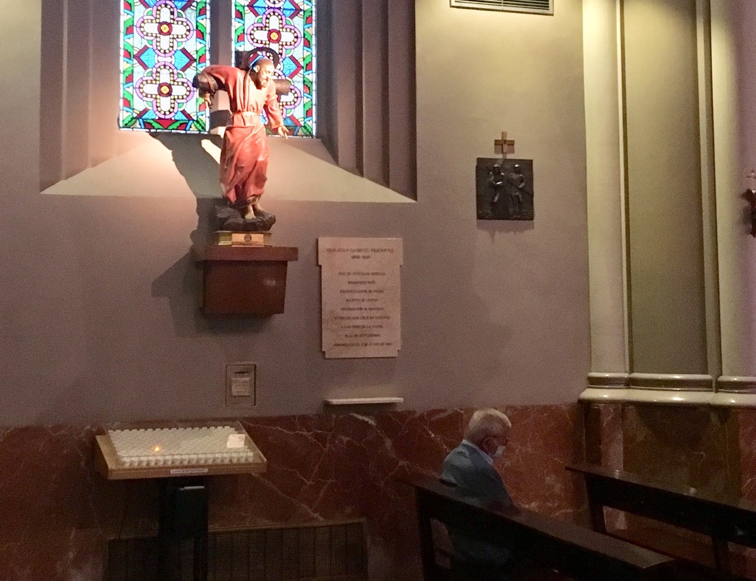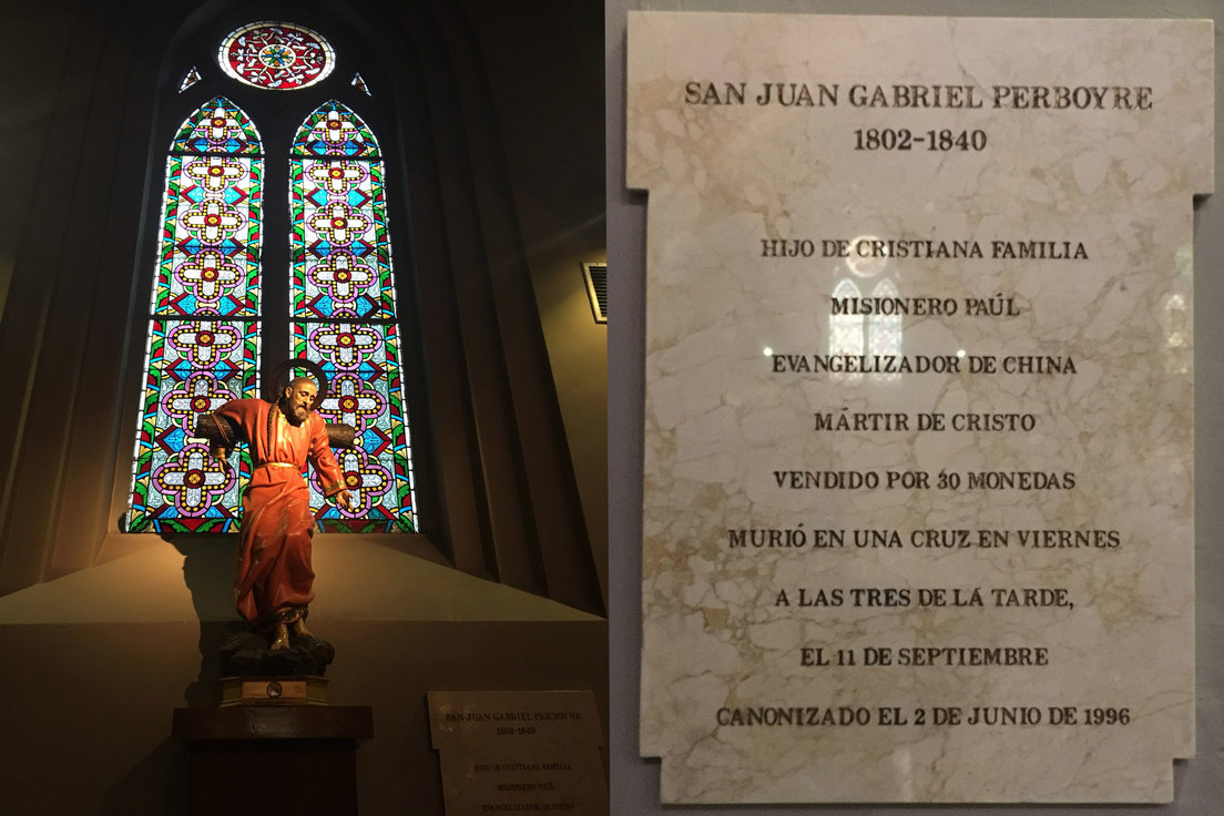 Junto a su imagen en la basílica madrileña, una placa de mármol explica lacónicamente su historia: "Hijo de cristiana familia. Misionero Paúl. Evangelizador de China. Mártir de Cristo. Vendido por 30 monedas. Murió en una cruz en viernes a las tres de la tarde, el 11 de septiembre. Canonizado el 2 de junio de 1996".