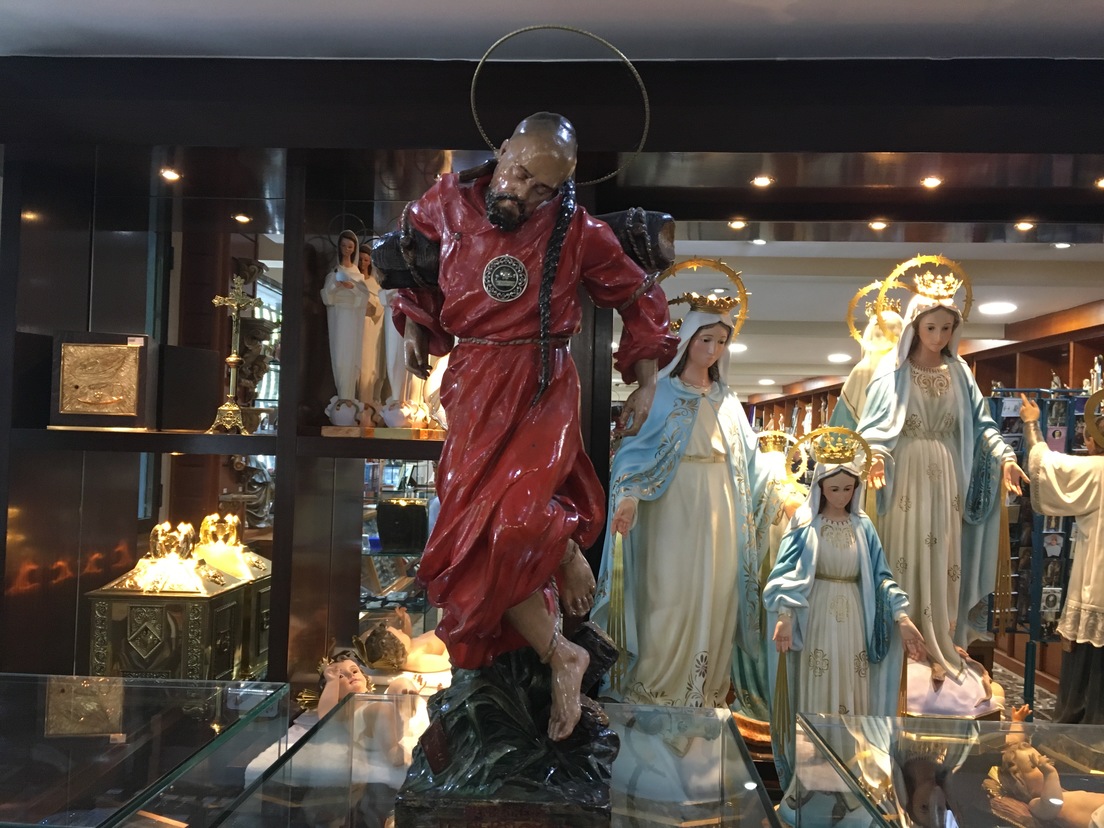 En la librería, los clientes aún son escasos en estos calurosos días de verano inmediatamente posteriores a la cuarentena. Madrid, además, se vacía considerablemente en estas fechas. Aún así, el encargado de la tienda nos confirma que se venden bastantes estampas con la oración y alguna que otra estatuilla. Y otras tantas personas entran a preguntar con sincera curiosidad.