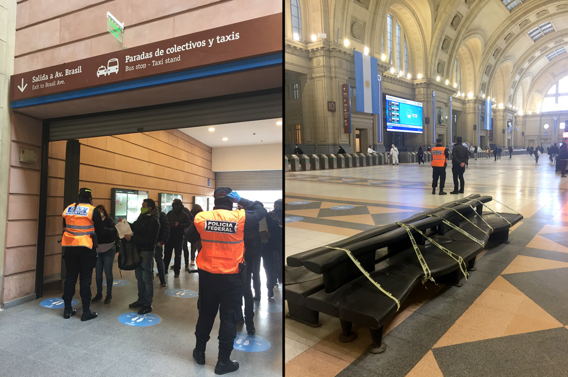 Mientras tanto, la presencia policial se reforzó en Constitución, Once y Retiro, las tres estaciones de trenes de Buenos Aires, para checar que no viajen pasajeros no autorizados. Las permanentes aglomeraciones de la antigua normalidad en estas terminales se evaporaron. Si acaso, a ratos se forman largas filas de personas que esperan a que los efectivos revisen sus documentos.