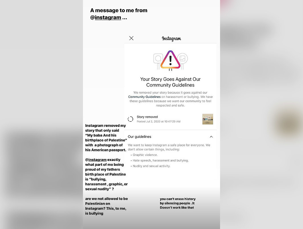 "¿No se nos permite ser palestinos en Instagram?"