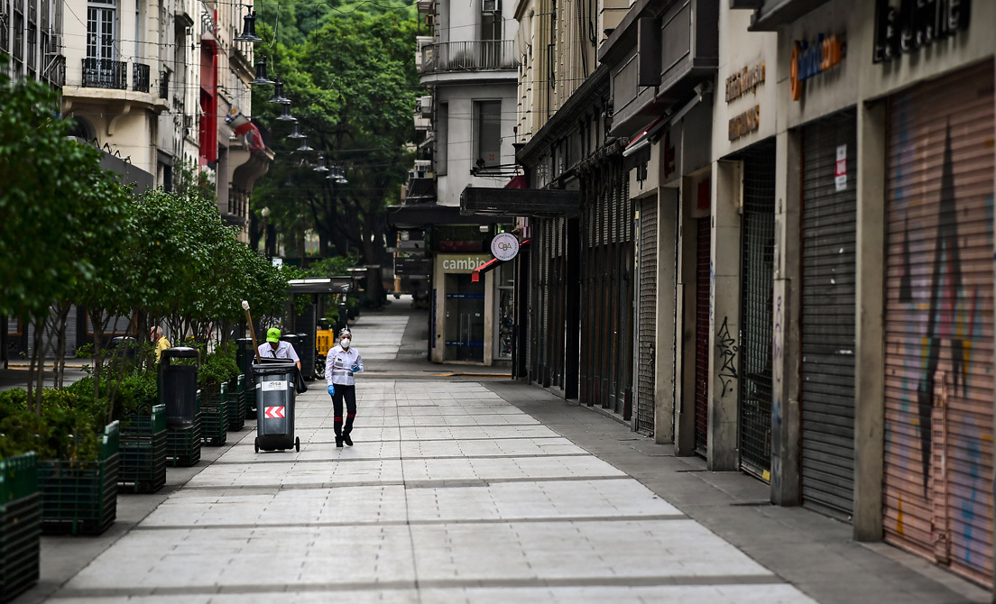 En un reporte desde la calle Florida, una peatonal que antes de la pandemia era símbolo de la vida comercial y turística de la capital argentina, se observan comercios cerrados y pocos peatones.