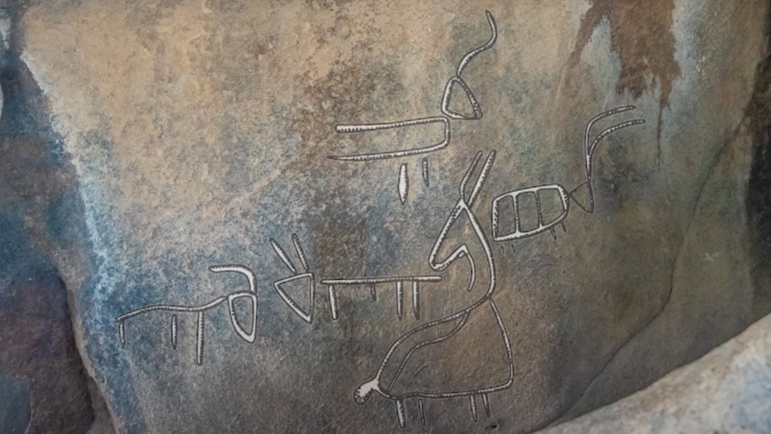 En una de las antiguas cámaras funerarias se encontraron seis animales con cuernos de diferentes tamaños tallados en una roca. Son claramente visibles, y dos de ellos están enfrentados. En la pared frente a la de la manada se descubrió un animal de un solo cuerno.