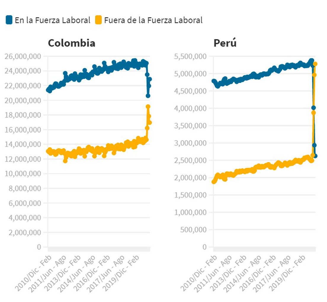 La situación más crítica la registró Perú, ya que el año pasado había cinco millones fuera de la fuerza laboral, y apenas 2,5 millones dentro.