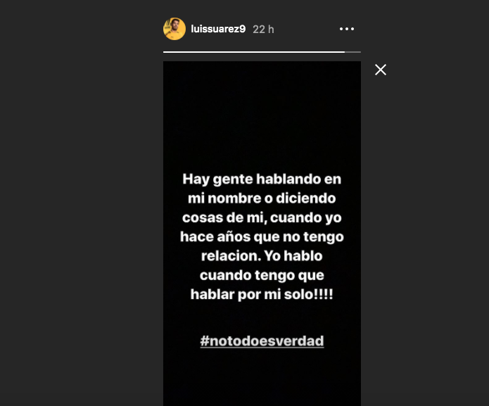 En una historia publicada en su cuenta de Instagram, Suárez escribió el siguiente mensaje: "Hay gente hablando en mi nombre o diciendo cosas de mí, cuando yo hace años que no tengo relación".