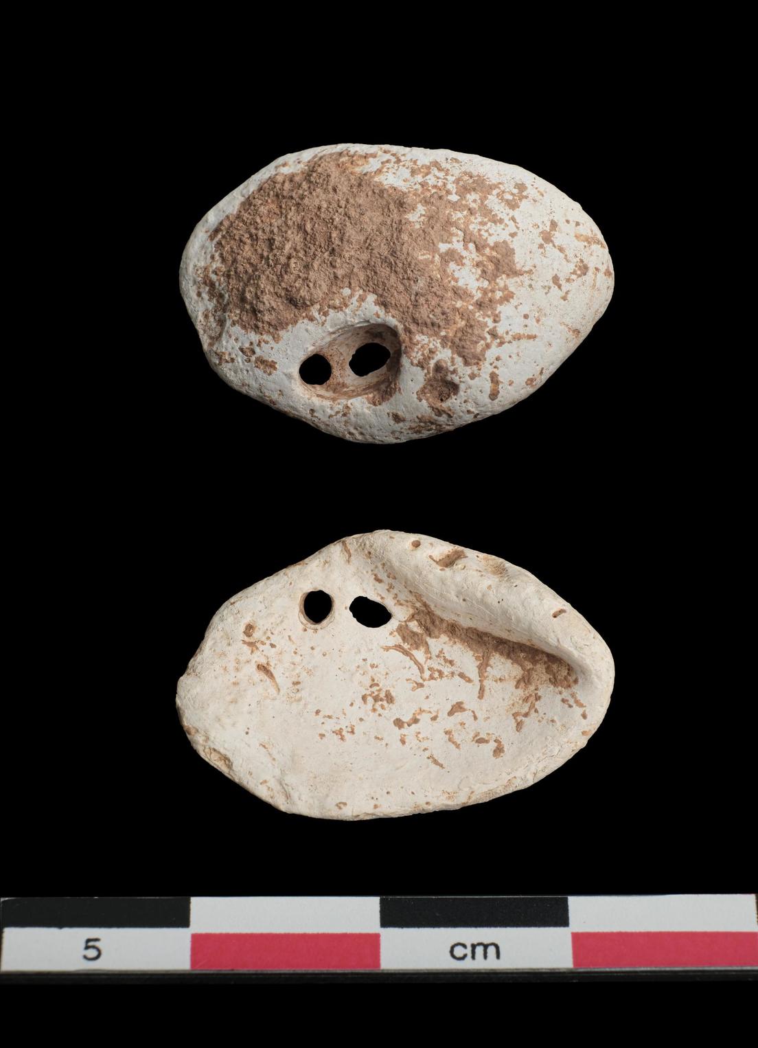 Además, en el centro de uno de los recintos se excavaron los restos de dos personas, probablemente un niño y una mujer, preservadas en una tumba hecha de grandes losas de arenisca. Los difuntos portaban elementos de adornos de concha y hueso relacionados con la temprana Edad de Bronce (entre los años 2200-1600 a. C.).