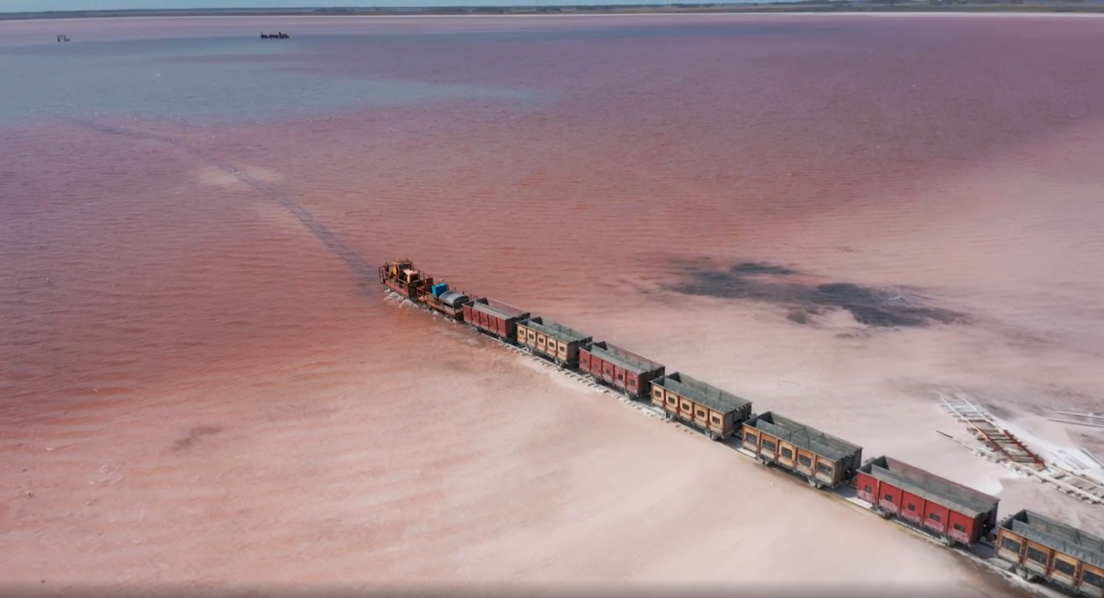 "¡Es tan surrealista cuando lo ves por primera vez! El agua es rosa, en el horizonte un tren se mueve por el lago, las piernas se hunden en la sal. Vale la pena visitar este lugar", dice el fotógrafo.