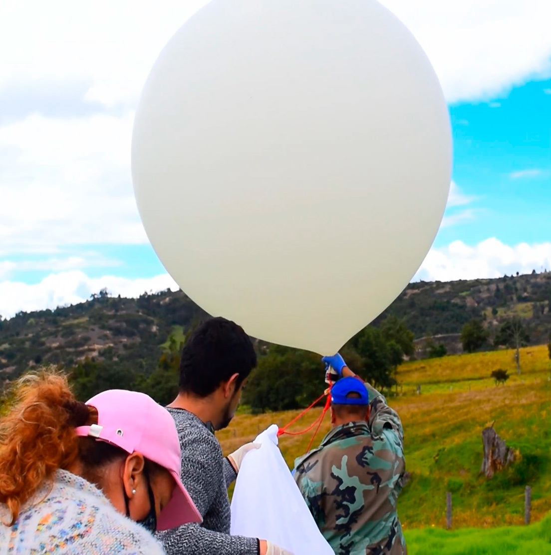 "Voy a lanzar un globo tan alto que quizás no se había visto en el país muchas veces", asevera el joven, mostrando imágenes del proceso previo donde ajusta la sonda, asegura los dispositivos electrónicos y el paracaídas e infla el globo meteorológico de 600 gramos con 1.811 litros de helio.