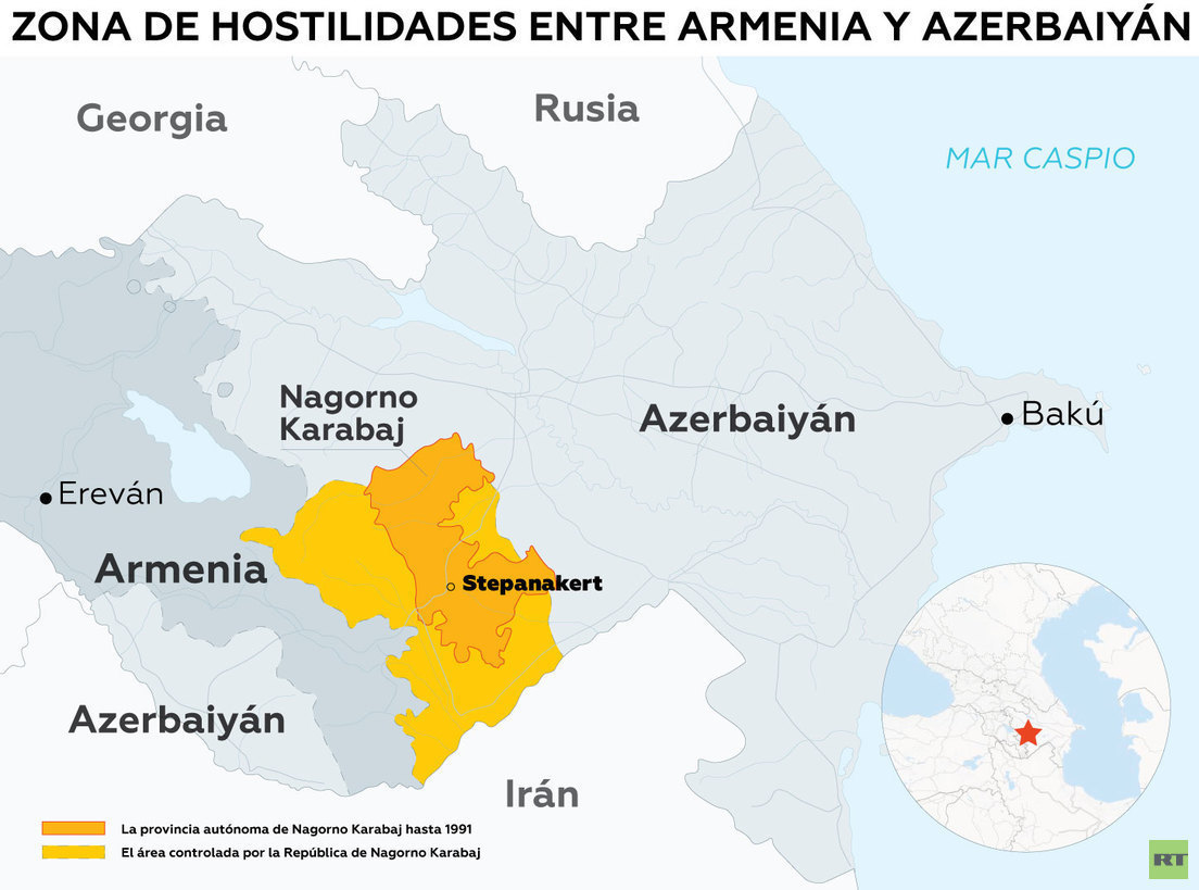 La región de Nagorno Karabaj es escenario de enfrentamientos bélicos entre Armenia y Azerbaiyán desde que el pasado 27 de septiembre el conflicto enquistado entre ambos países estallara con fuerza renovada. Ambos países se acusan mutuamente de la escalada y han sufrido pérdidas tanto militares, como entre la población civil.