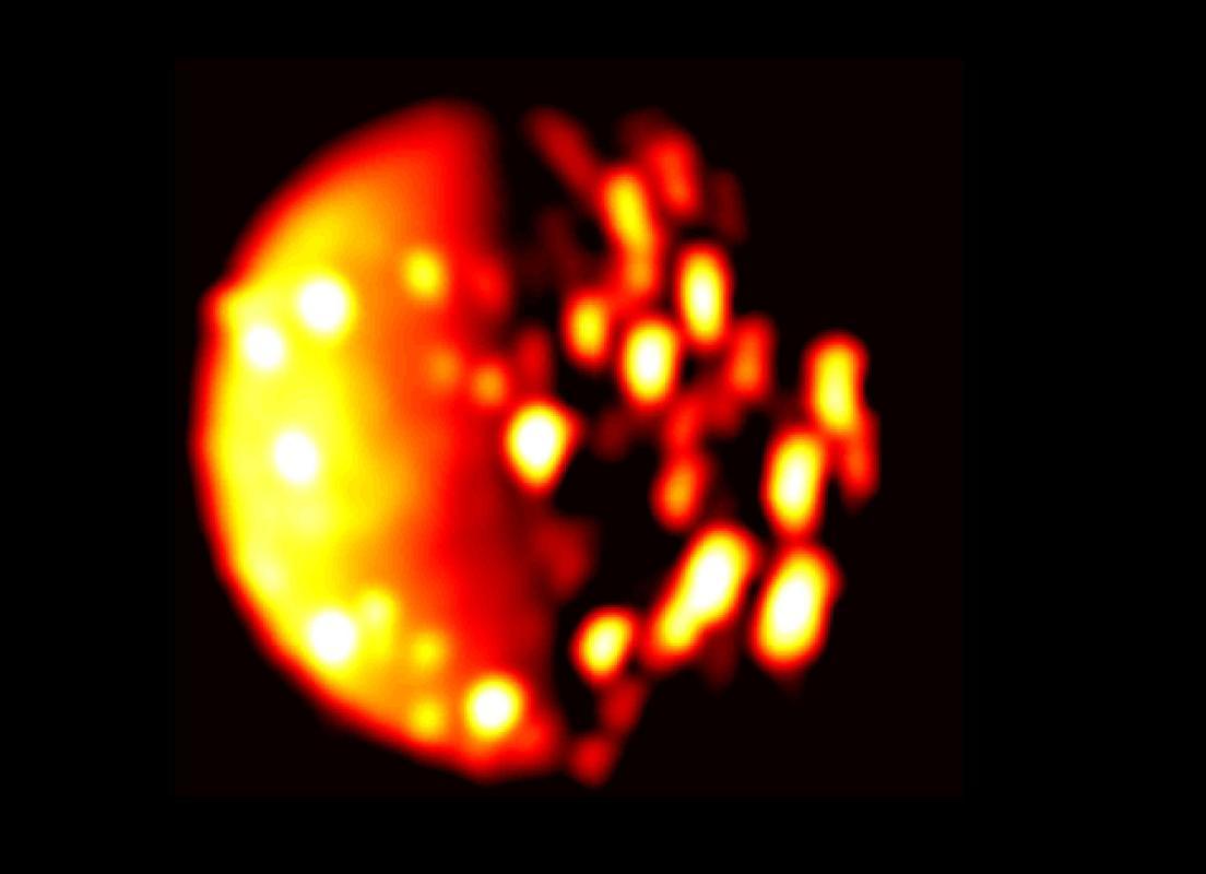 Estos gases de azufre, una vez congelados y condensados en la superficie, tiñen a Ío de color amarillo, naranja y rojo. Se sabe también a ciencia cierta que esta luna tiene cerca de 400 volcanes activos, que son apreciables en infrarrojo. Sin embargo, se desconoce "qué proceso impulsa la dinámica en la atmósfera de Ío", según admitió el astrónomo Imke de Pater, de la Universidad de California en Berkeley (EE.UU.), en un comunicado.