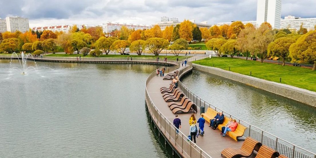 Los residentes del distrito más verde de Moscú (y el más alejado del centro) caminan por las noches por este parque con fuentes luminosas en cascada, cuyos chorros se elevan a hasta 8 metros de altura. Y cuando llega la oscuridad, su pasarela sobre el agua adquiere el aspecto de un camino iluminado por la Luna.