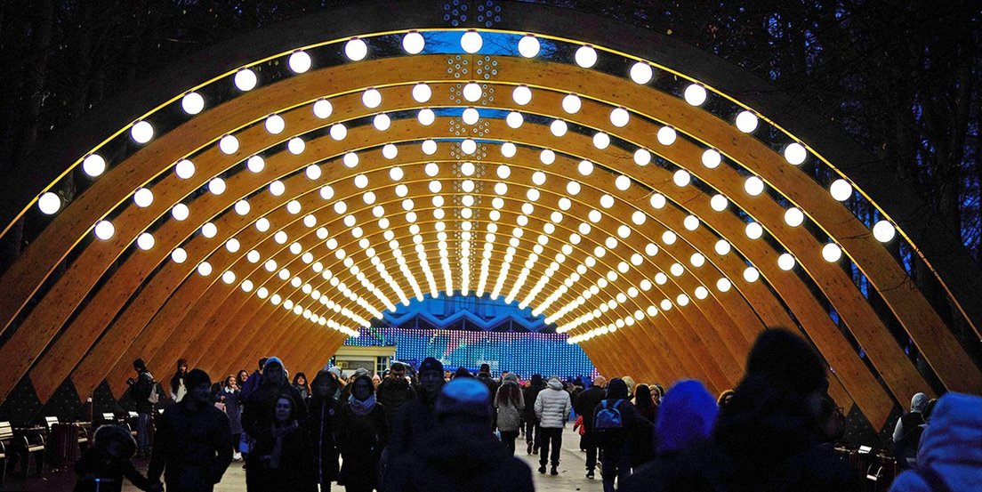 Situado en la ciudad dormitorio de Lianózovo, en el norte de Moscú, este es otro de los parques creados dentro del programa Mi Barrio que tiene un aspecto fantástico por la noche. Ello se debe a los enormes portales en forma de arco de estilo modernista que brillan por las noches con una luz blanca visible a varios metros alrededor. ¡Sin duda aquí no es posible perderse!