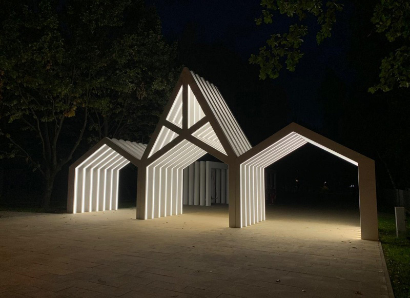 Este nuevo parque situado en el distrito de Bíbirevo, en el noreste de Moscú, fue inaugurado en 2019 en el marco del programa Mi Barrio, y parece haber sido creado especialmente para los paseos nocturnos. Al anochecer, en el parque se enciende una inusual y brillante iluminación tanto en los grandes columpios, como en los arcos y senderos, convirtiendo un jardín común en un bosque mágico. Por todo el parque están instalados bancos en forma de bolas, estrellas y cilindros que también brillan por la noche.