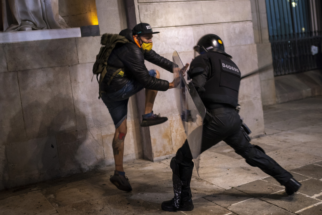 La jornada de protestas en Barcelona se saldó con 30 heridos —23 de ellos policías y otros siete, manifestantes— y 15 detenidos, dos de ellos menores de edad. Entre la concentración contra los confinamientos y cierres también hubo negacionistas de covid-19, reportaron medios locales.