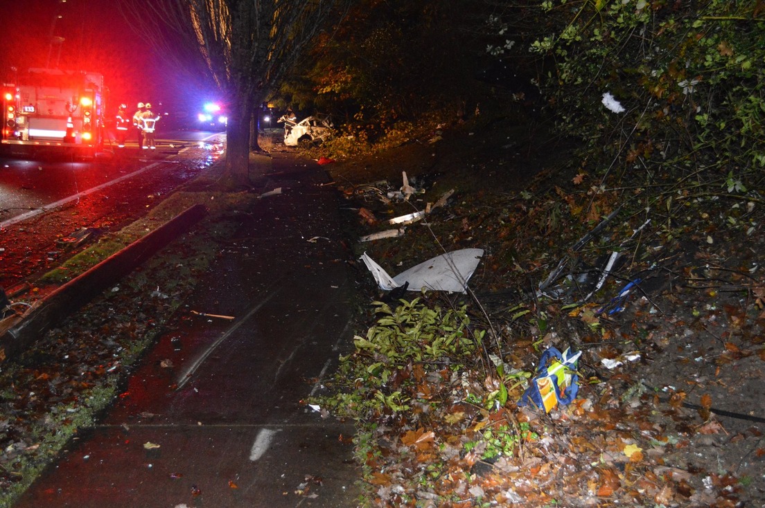 Se detalla que, tras salirse de la carretera, el coche avanzó más de 100 metros, derribó dos árboles y destruyó una caja de conexiones telefónicas antes de detenerse. El conductor, Dylan Milota, sufrió heridas leves y trató de huir del lugar, pero fue detenido por agentes. Un examen médico mostró que había consumido marihuana.