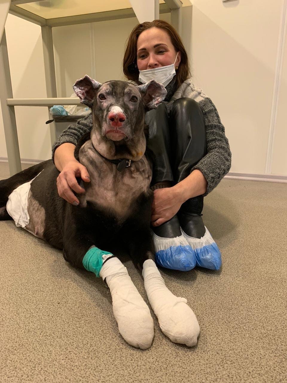 La perra sufrió terribles quemaduras en la cara, las orejas, el vientre y las patas, y se espera que dé a luz a varios cachorros a finales de mes. Según un veterinario, todos los cachorros se están desarrollando bien.