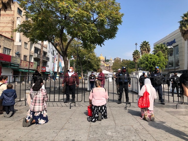 Mientras Muñoz habla, un grupo de cuatro mujeres se arrodilla ante el filtro policial y comienza a rezar el "Ave María". Durante una hora mantienen sus plegarias mientras que los policías tratan de explicarles que el mandato es que sigan circulando. Ellas siguen con sus rezos y se marchan. "Vine porque soy mexicana y católica", dice una de ellas mientras se retira de la zona. En realidad esto es una anécdota. La gran mayoría de los fieles se quedó en casa y siguió las celebraciones a través de Internet.