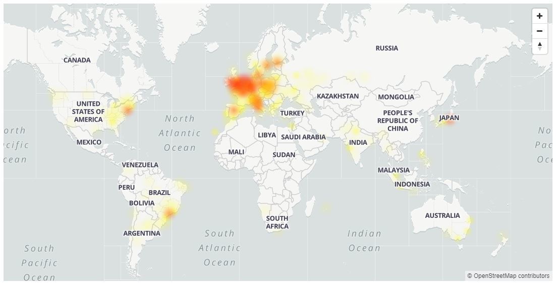 La mayoría de los reportes acerca de YouTube provienen de países de Europa, como el Reino Unido, Alemania, Grecia, Portugal, Francia, Polonia y Rusia; aunque también se registran problemas en otros estados como Japón, Australia e Indonesia. El 46 % de los internautas se quejan de que no se carga el sitio web, mientras que el 44 % de las personas informan sobre la imposibilidad de ver los videos.