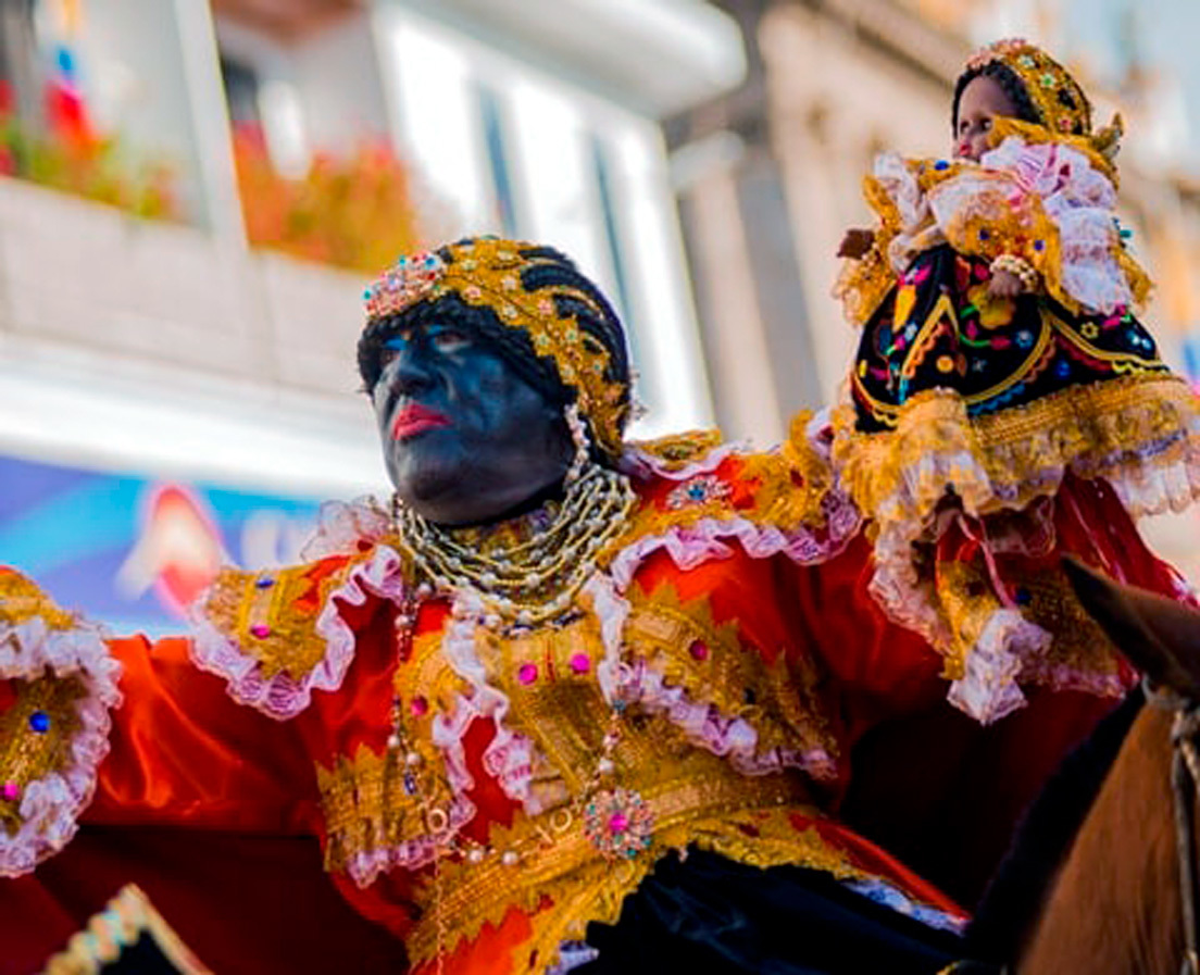 En Ecuador, por ejemplo, en septiembre y noviembre, en la ciudad de Latacunga, al centro del país, se celebra la fiesta de la Mama Negra, en homenaje a la Virgen de la Merced. En la celebración, la figura central es la Mama Negra, personificada siempre por un hombre que tiñe su rostro de color negro y sus labios carnosos de un intenso color rojo carmesí.