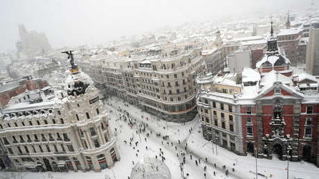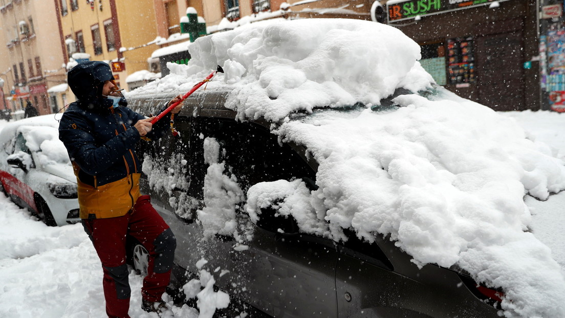 En Madrid cayeron más de 50 centímetros de nieve ocasionando la paralización del tráfico terrestre y aéreo, así como la suspensión de clases hasta el martes.