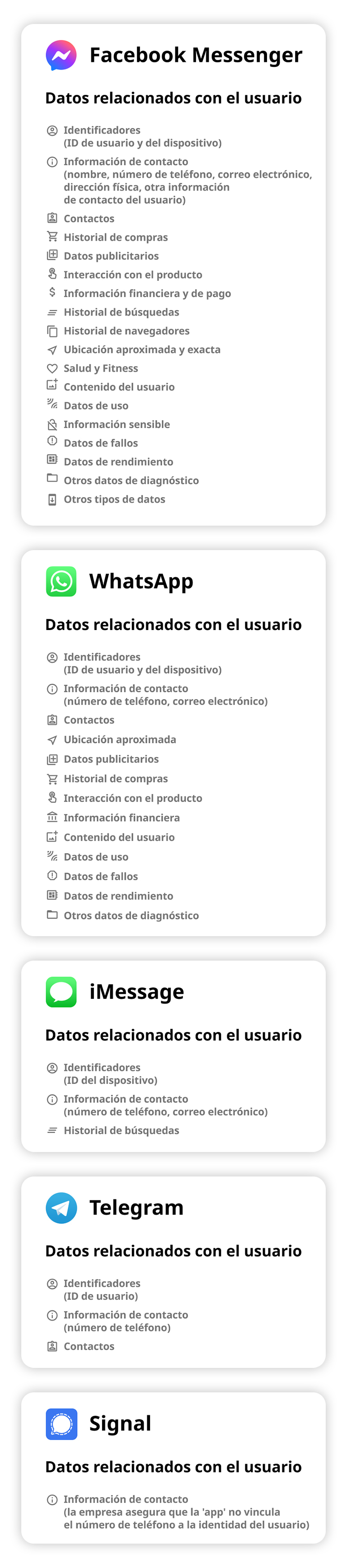 ¿Qué datos personales recopilan los más populares servicios de mensajería?
