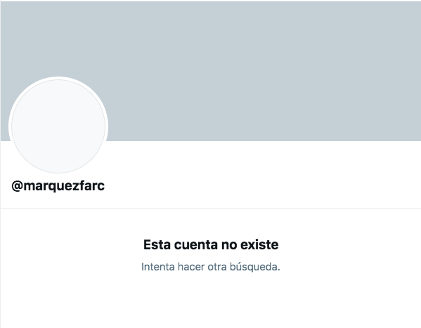 La cuenta de la disidencia armada de las extintas Fuerzas Armadas Revolucionarias de Colombia, denominada Segunda Marquetalia y cuyo usuario es @SMarquetalia, también fue suspendida por Twitter.
