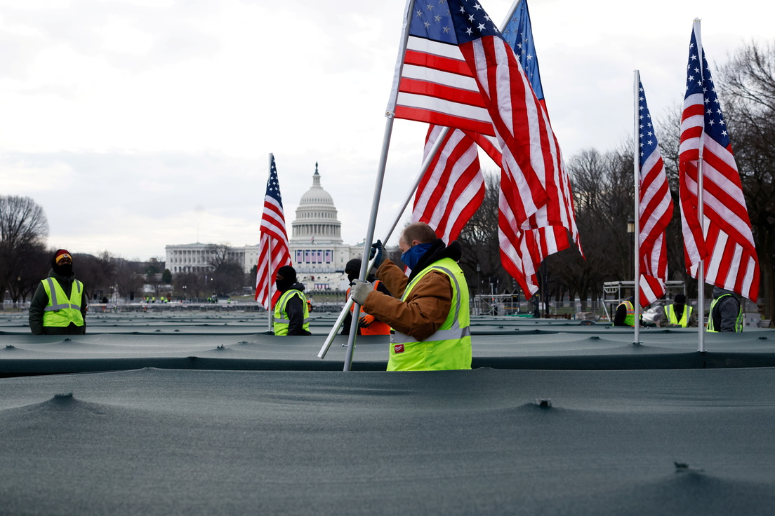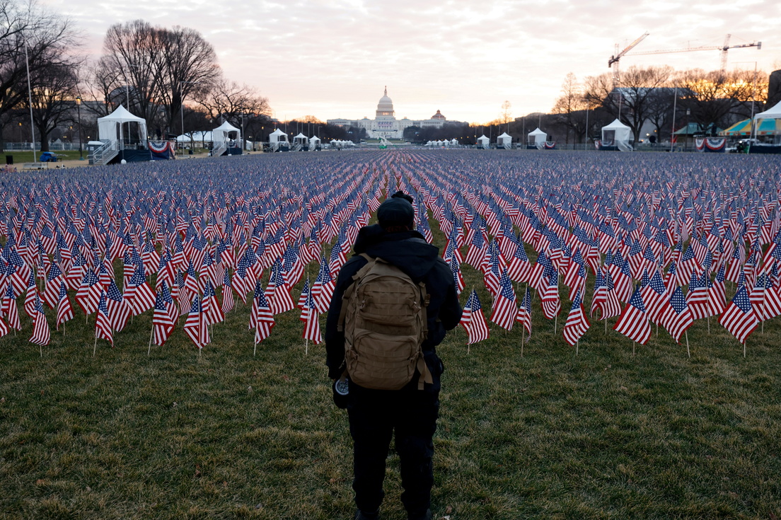 Alrededor de 200.000 banderas se han colocado en el National Hall de Washington para la ceremonia de investidura de Joe Biden como 46º presidente de EE.UU., que se celebrará este miércoles, informa la prensa local.