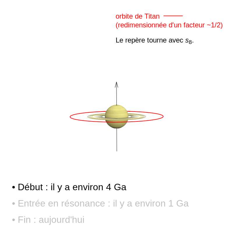 La nueva explicación, propuesta por los astrofísicos del Centro Nacional de Investigación Científica de Francia y de las universidades de Sorbona (Francia) y de Pisa (Italia) apunta a una resonancia del planeta con sus lunas ocurrida hace aproximadamente 1.000 millones de años, cuando el resto de planetas probablemente ya tenían sus ejes orientados casi como hoy en día. Sin embargo, Saturno no se volvió oblicuo de una vez para siempre, sino que vivió una evolución continua de su posición en el espacio.