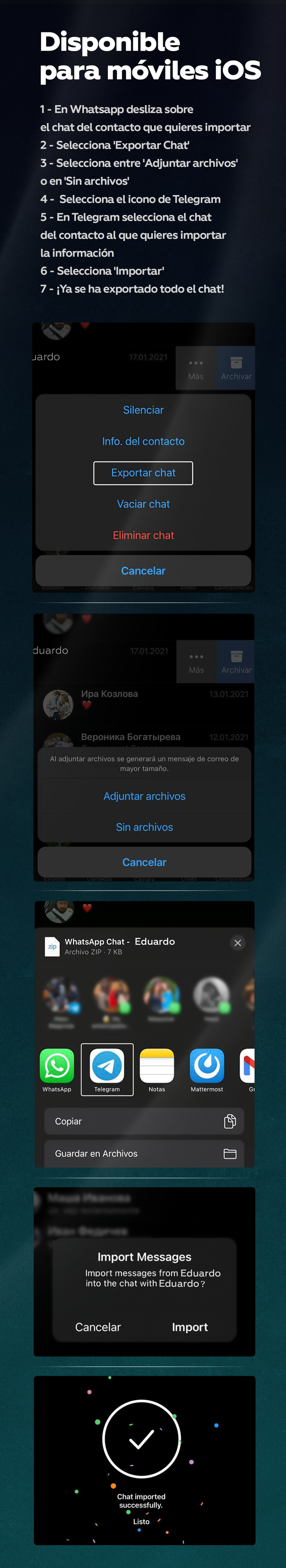 Para exportar los datos hay que abrir la otra aplicación de mensajería y archivar un chat necesario. Luego puede trasladarlo a Telegram, usando el botón 'compartir' en el menú de iOS, informa el portal Telegram Info.