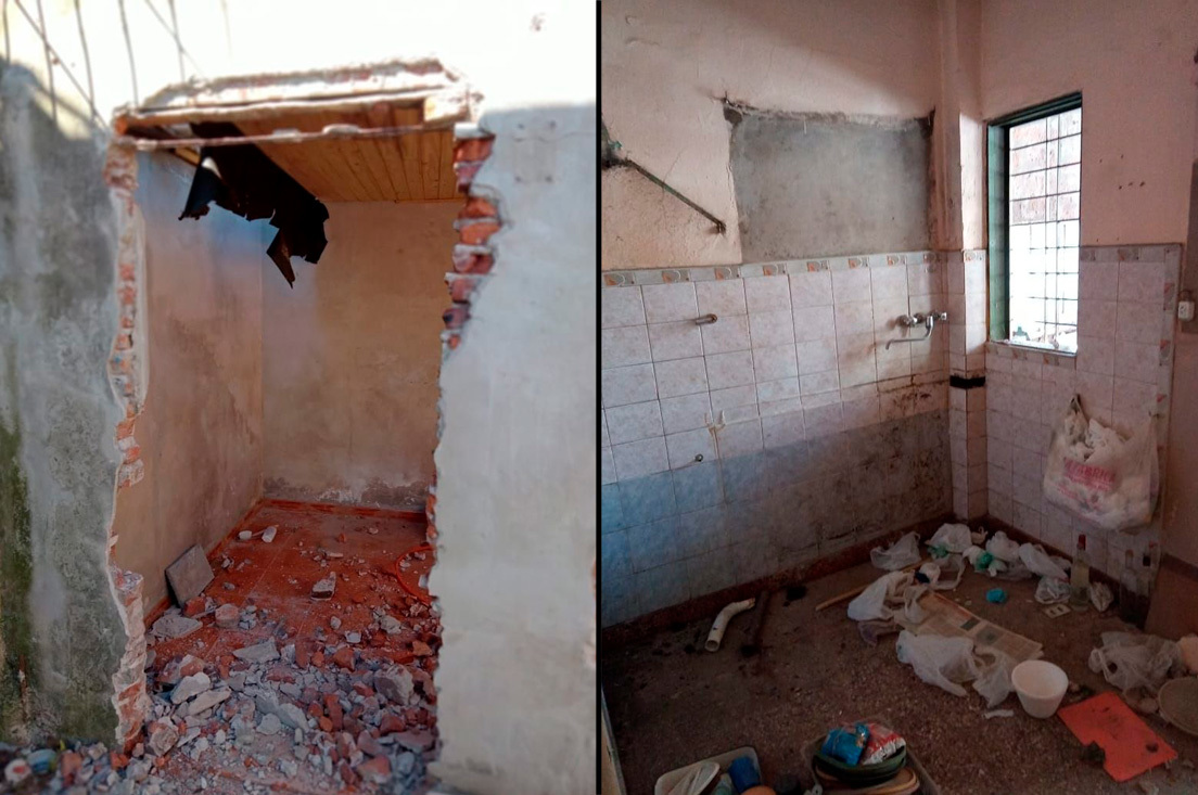 Ahora, el lugar está inhabitable: "Destrozaron la casa a mazazos", cuenta. Antes de entrar, esperaba ver "un sitio viejo, con poco mantenimiento, humedad o sin pintar". Sin embargo, se encontró con una escena similar al paso de un huracán: "No dejaron ninguna ventana, las arrancaron con marcos y todo. Las puertas también, incluyendo las visagras, poniendo en riesgo a la propia construcción. Algunas están rotas a martillazos o patadas", grafica.