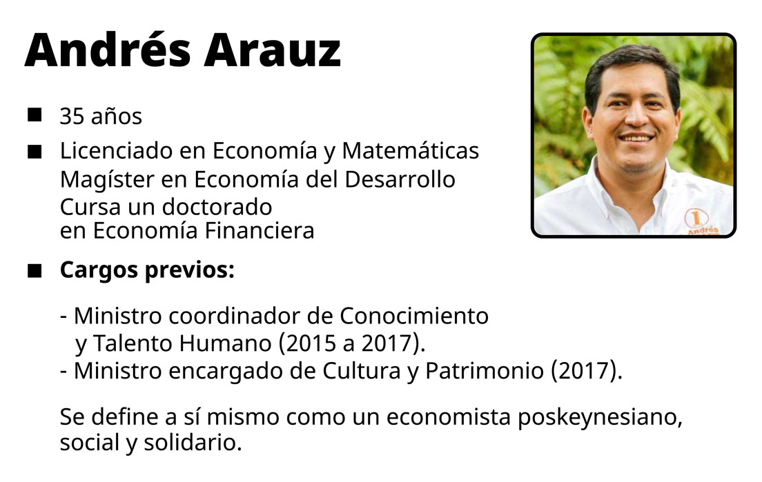 El quiteño Arauz cumple 36 años un día antes de los comicios. De ganar, se convertiría en el presidente más joven del país, después de Juan José Flores, el primer mandatario de la República del Ecuador, en 1830, que asumió el cargo antes de cumplir los 30 años.