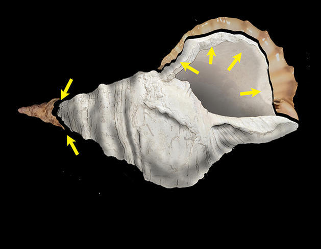 Sin embargo, tras examinar de nueva cuenta la caracola, los investigadores identificaron marcas de corte en el labio exterior de la abertura del caparazón, así como un orificio de 3,5 centímetros de diámetro en la punta de la concha, la parte más dura, indicios inequívocos de que había sido manipulada por el hombre.