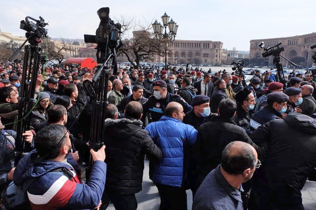 Mientras tanto, una manifestación de la oposición comenzó en la capitalina plaza de la Libertad. La oposición afirmó estar lista para pasar la noche en la plaza hasta que Pashinián dimita.