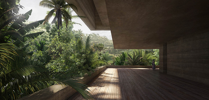 El edificio será levantado, junto con el Estudio Juiñi, en el borde de la selva tropical en el sur de México, concretamente en un área de 90 hectáreas de bosque talado ilegalmente, que planea ser reforestado en los próximos años.