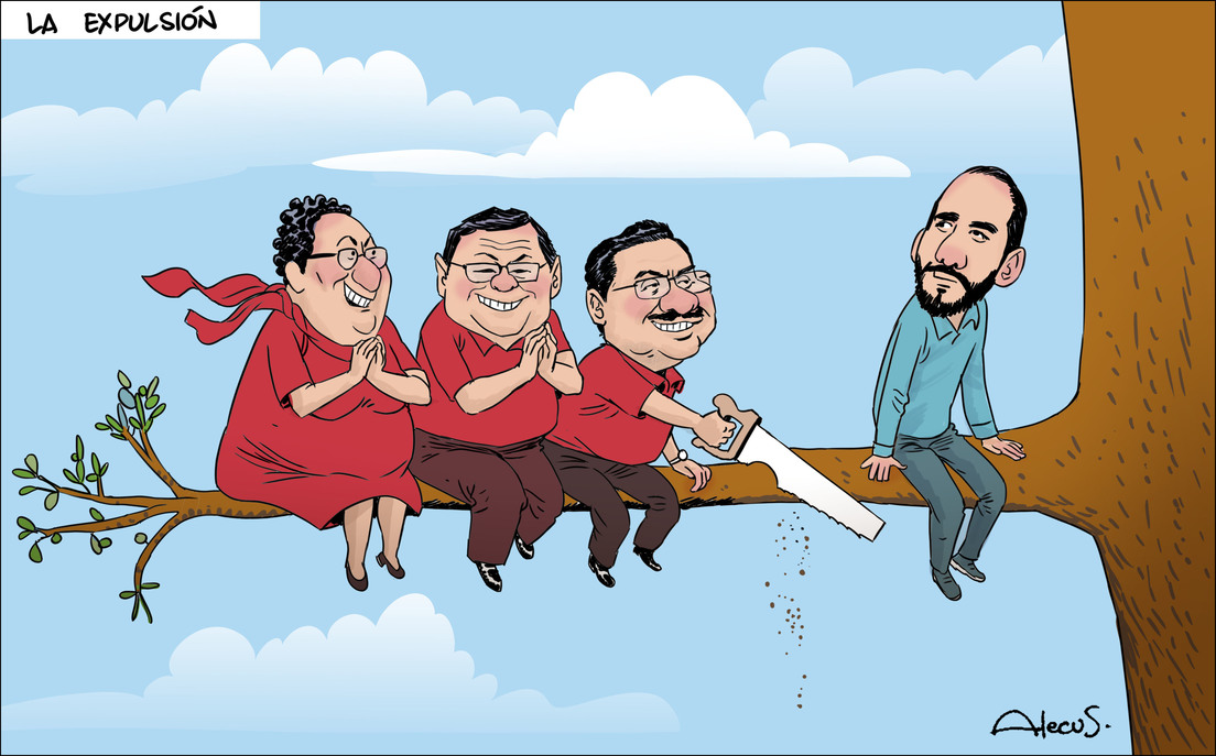 Bukele fue expulsado del FMLN la noche del 10 de octubre de 2017, una semana después de que se publicara aquella caricatura.
