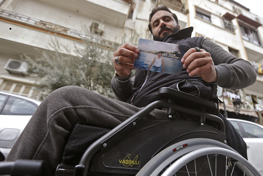 El vehículo de Samer al-Sawwan fue atravesado por una bala mientras conducía en 2011. El auto volcó y lo dejó paralizado para siempre. "Me desmayé con las dos piernas y me desperté en una silla de ruedas", contó. "Mis ambiciones y sueños cambiaron", agregó.