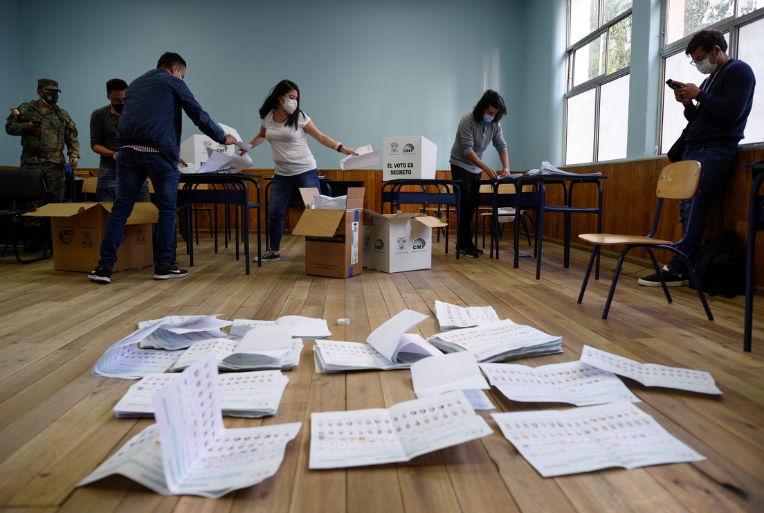 Andrés Arauz, candidato del partido Unión por la Esperanza (UNES), que aglutina al correísmo, obtuvo el 32 % de los votos en la primera vuelta, mientras que Guillermo Lasso, de Creando Oportunidades (CREO), alcanzó el 19 %, en medio de un empate técnico con el indigenista Yaku Pérez, que también rozó la misma cifra de manera sorpresiva. Después de más de un mes de espera, el 14 de marzo, el Consejo Nacional Electoral rechazó la impugnación de Yaku, quedando una diferencia de apenas 32.000 votos entre ambos.